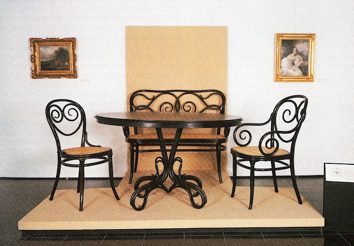 Der Schreinermeister Michael Thonet aus dem mittelrheinischen Boppard perfektioniert schon während der Biedermeierzeit das Biegen von Holz. Nach Wien berufen baut er dort ab 1842 eine internationale Möbelgroßproduktion auf.