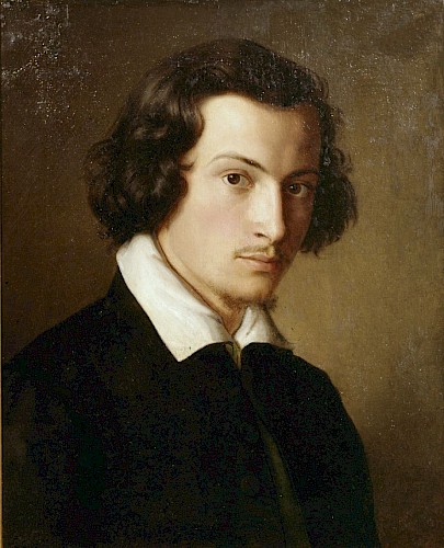 Besonders bemerkenswert sind die lebendigen Augen, die den Betrachter direkt anblicken und eine Verbindung schaffen. Der Kontrast zwischen dem dunklen Hintergrund und dem hellen Kragen hebt die Figur zusätzlich hervor und lässt die Details des Gesichts und der Kleidung eindrucksvoll zur Geltung kommen. Die Wahl der altdeutschen Tracht als politisches Statement verdeutlicht zudem, wie wichtig auch Identität und Herkunft für Künstler waren. Indem der Maler seine deutsche Herkunft auch in Rom als Angehöriger des Lukasbunds betont, positioniert er sich nicht nur kulturell, sondern auch politisch.